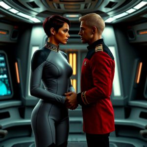 „Fremdes Schiff ruft uns, Admiral.“ Kya straffte sich. Derzeit war sie die ranghöchste Vertreterin ihrer Heimat, sie war gespannt, wer hier in den Kampf eingegriffen hatte. Auf dem Kommunikationsbildschirm erschien ein Mann mit dunkelblondem Kraushaar und grauen Augen, der eine scharlachrote Uniformjacke zu schwarzen Hosen trug!
