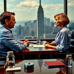 „Ein kleiner, kahler Mann in einem blauen Overall und eine künstliche Blondine in einem grünen Minikleid, die ihren Haaransatz nachfärben sollte. Er trinkt Tee, sie typischen amerikanischen Filterkaffee mit Milch und Zucker.“